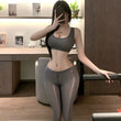 健身女神 灰色【短背心+开裆拉链瑜伽裤】