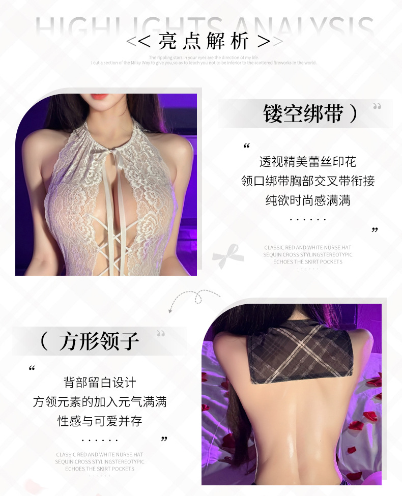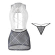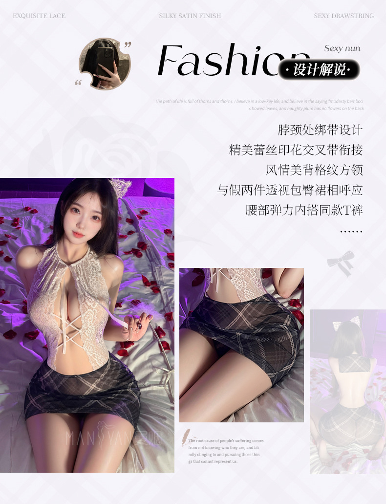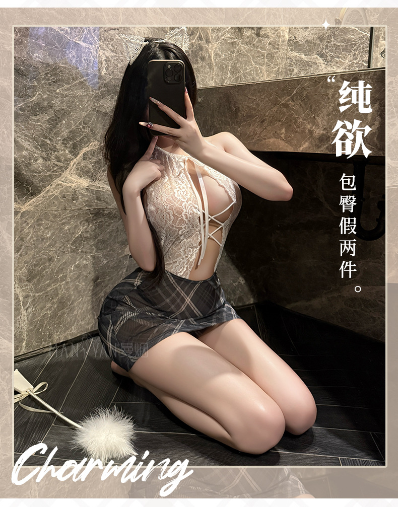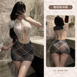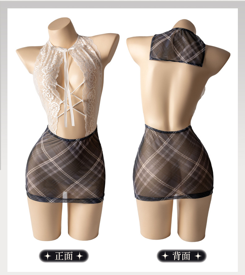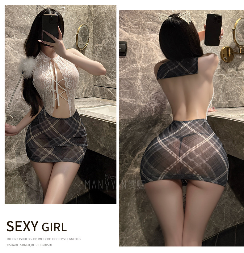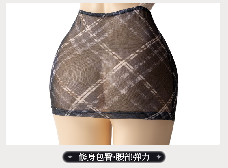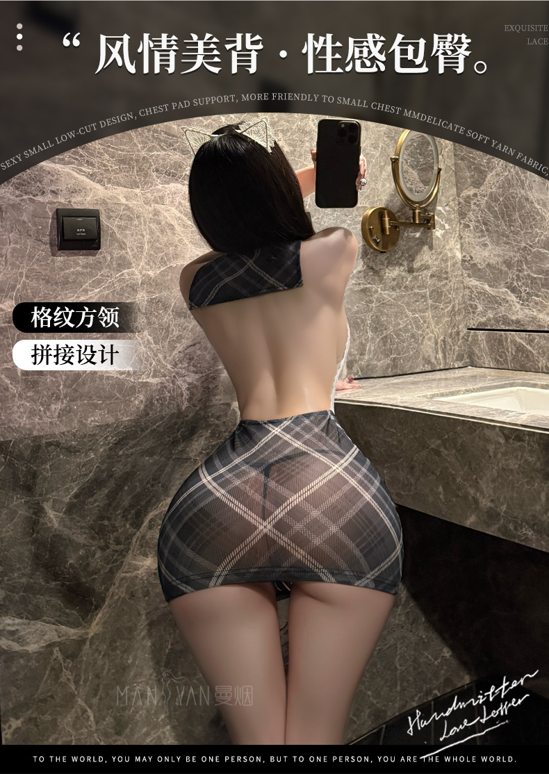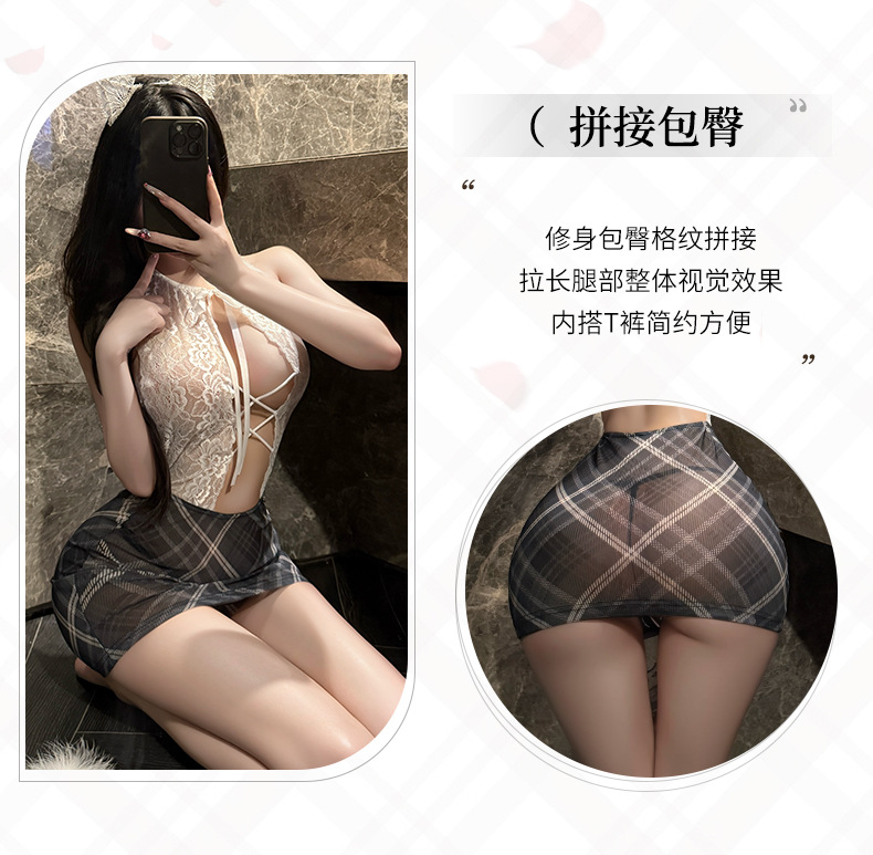 初入职场 性感格纹透视蕾丝美背紧身包臀秘书制服