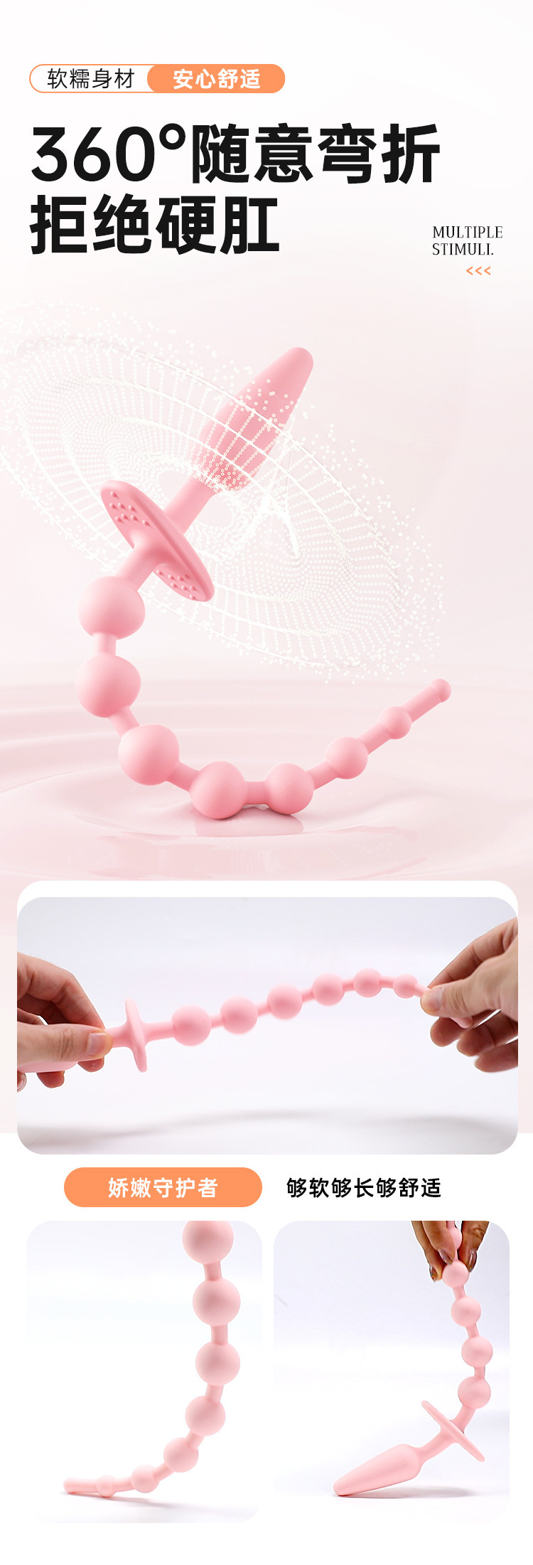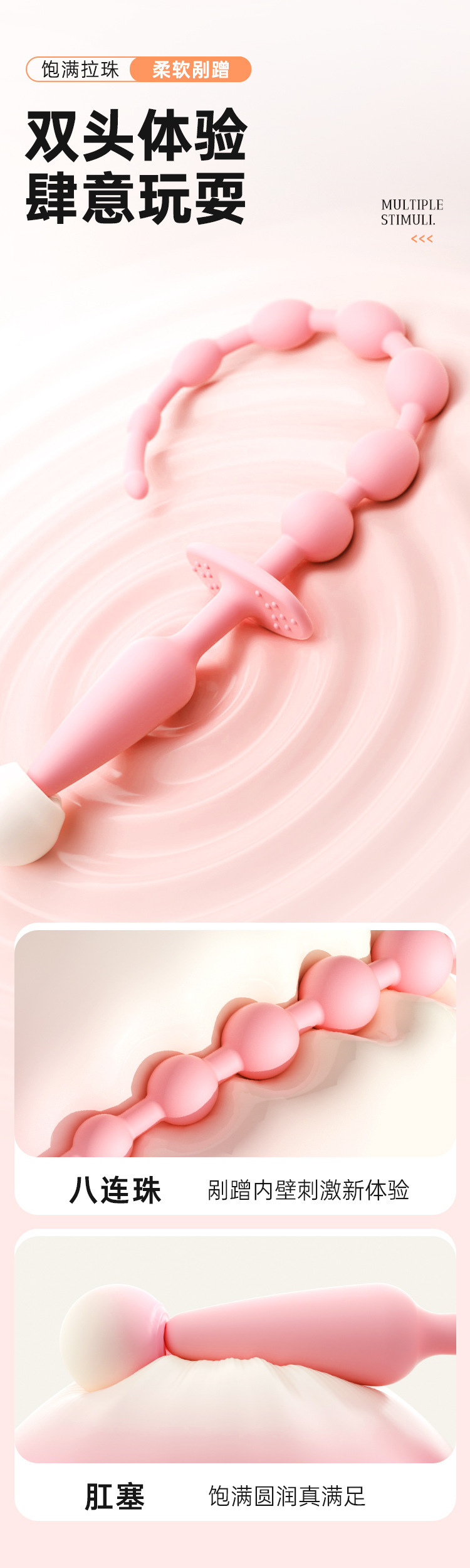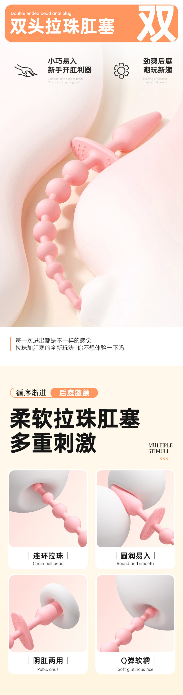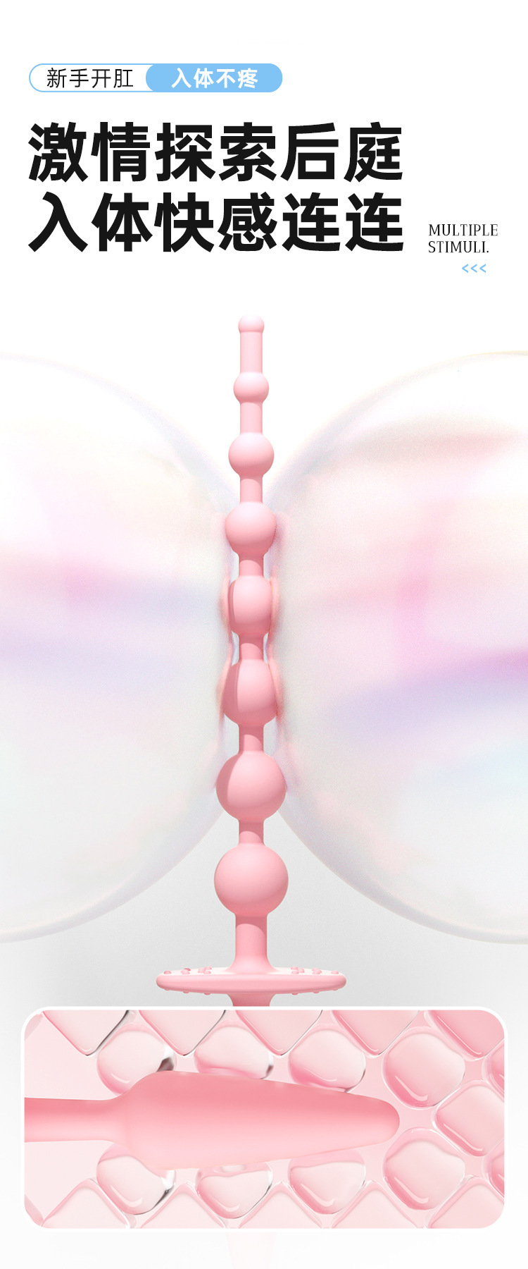 双头圆形连环硅胶拉珠肛塞情趣后庭按摩器