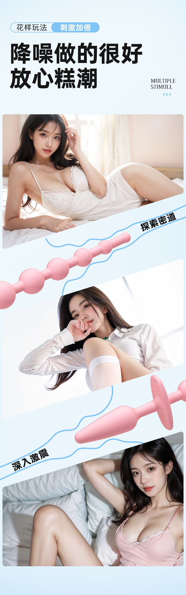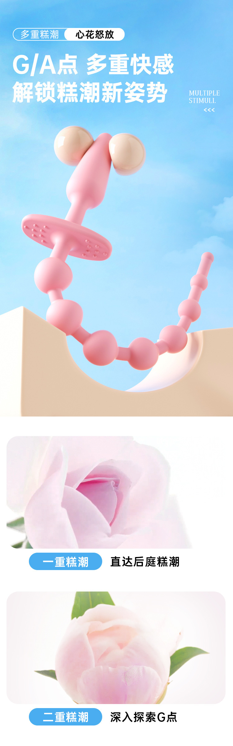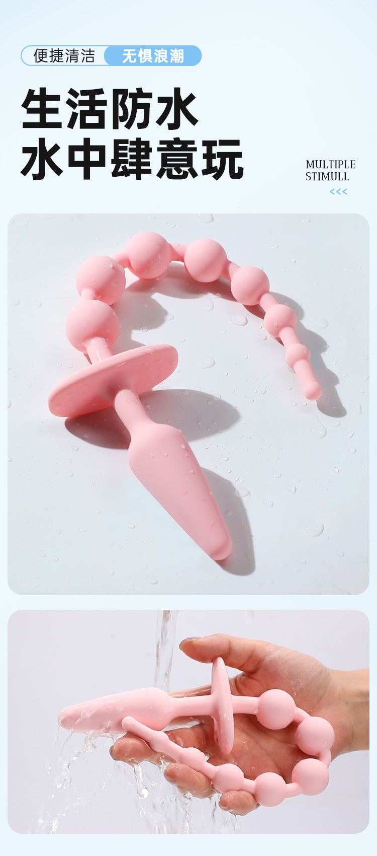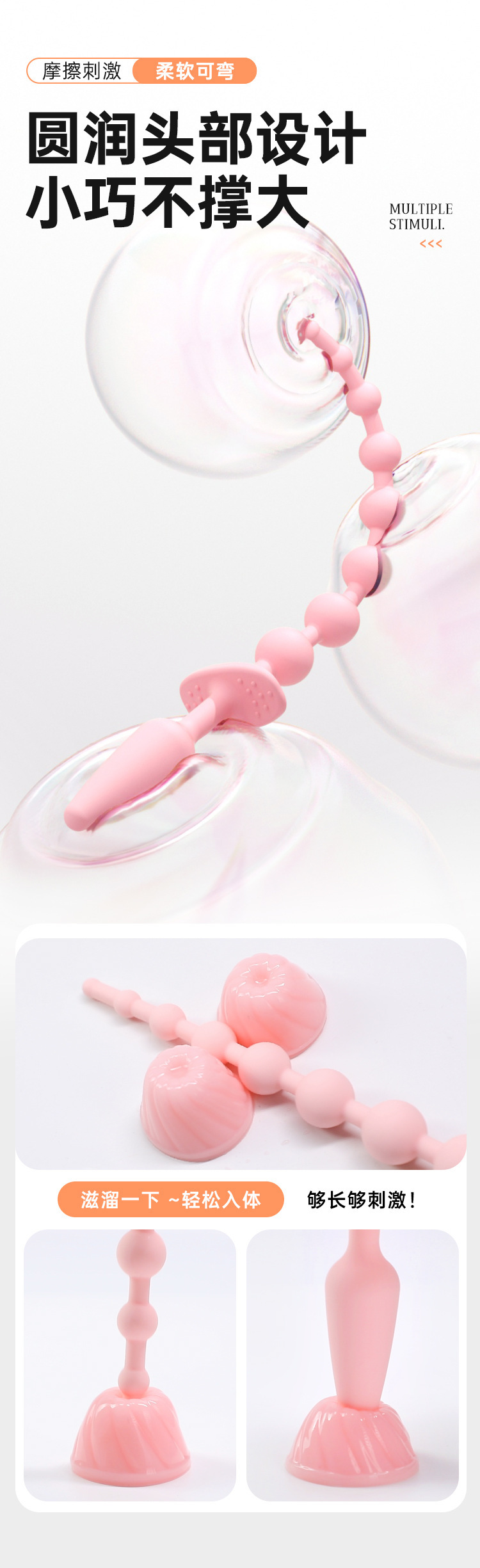 双头圆形连环硅胶拉珠肛塞情趣后庭按摩器