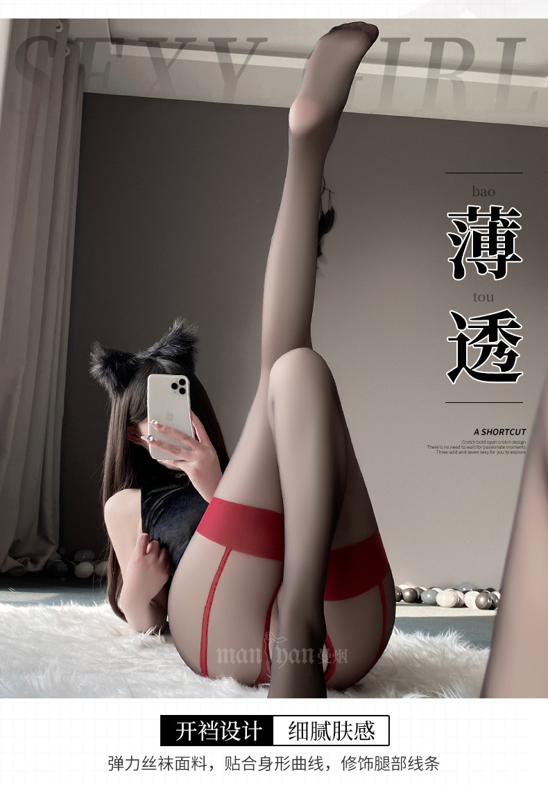 复古假吊袜带开档连裤袜丝袜