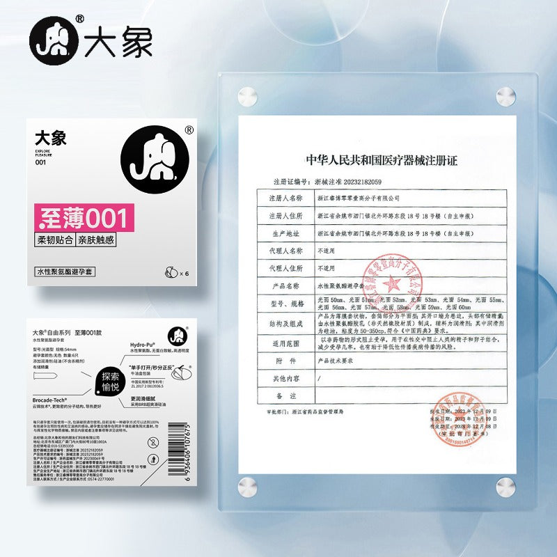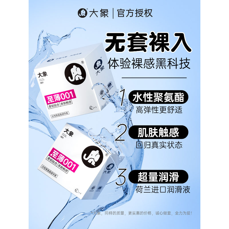 大象自由系列001至薄超薄裸避孕套 - 3只装