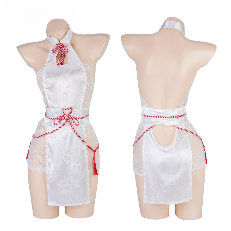恋恋白桃 白色【旗袍+臂环*2+T裤】