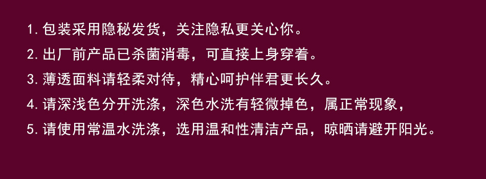 本网站所销售的产品均属于消耗品及个人私密使用之物品。为了保护您和其它消费者的利益,除产品明显缺陷以外,我们将无法退换购买的玩具和产品。在购买前请仔细阅读有关文字介绍,如有疑问,请及时和我们联系,我们将热情为您服务。如果您在商品使用中对商品质量或者商品使用方式有任何疑问,请直接联系我们的客服人员寻求解答。