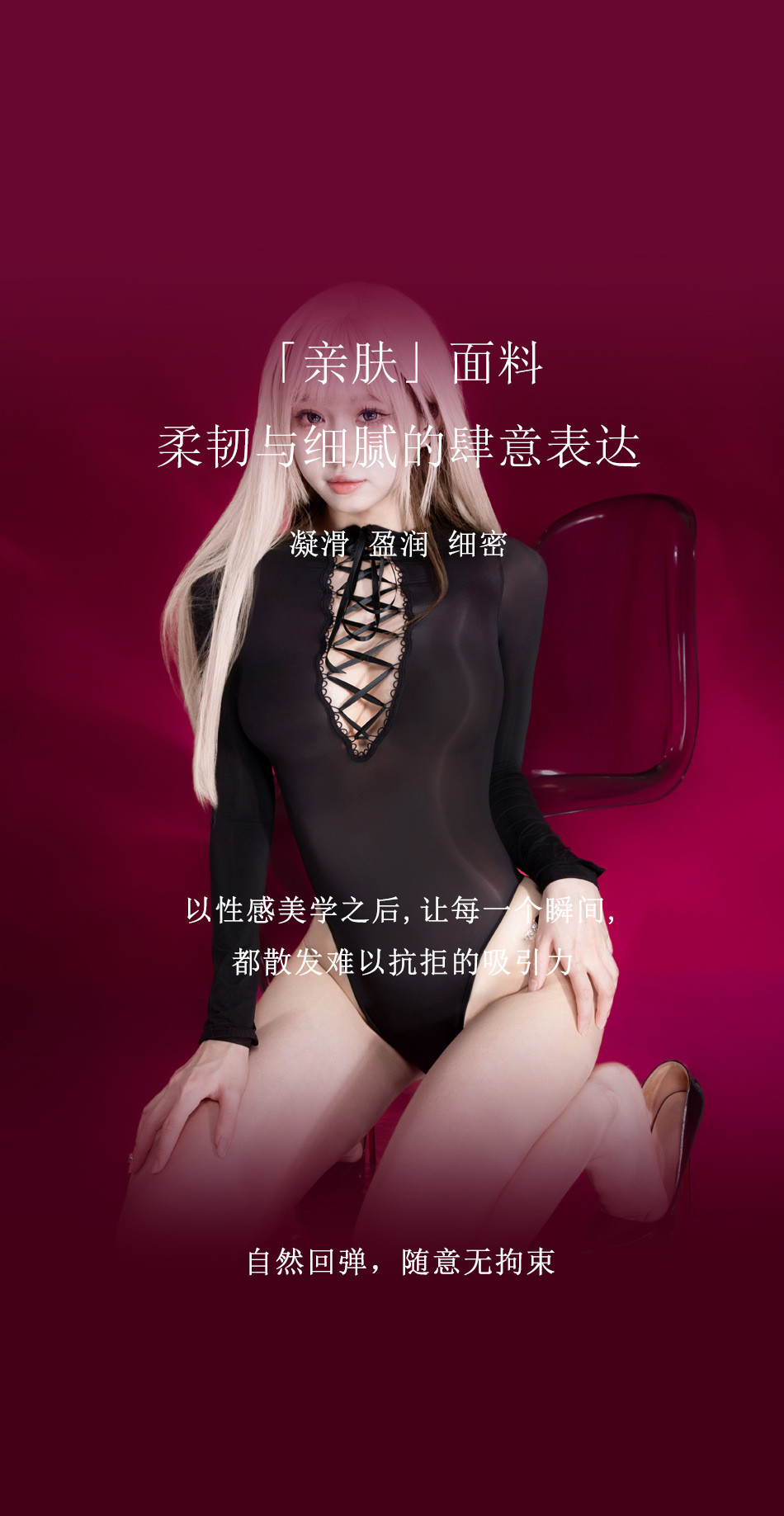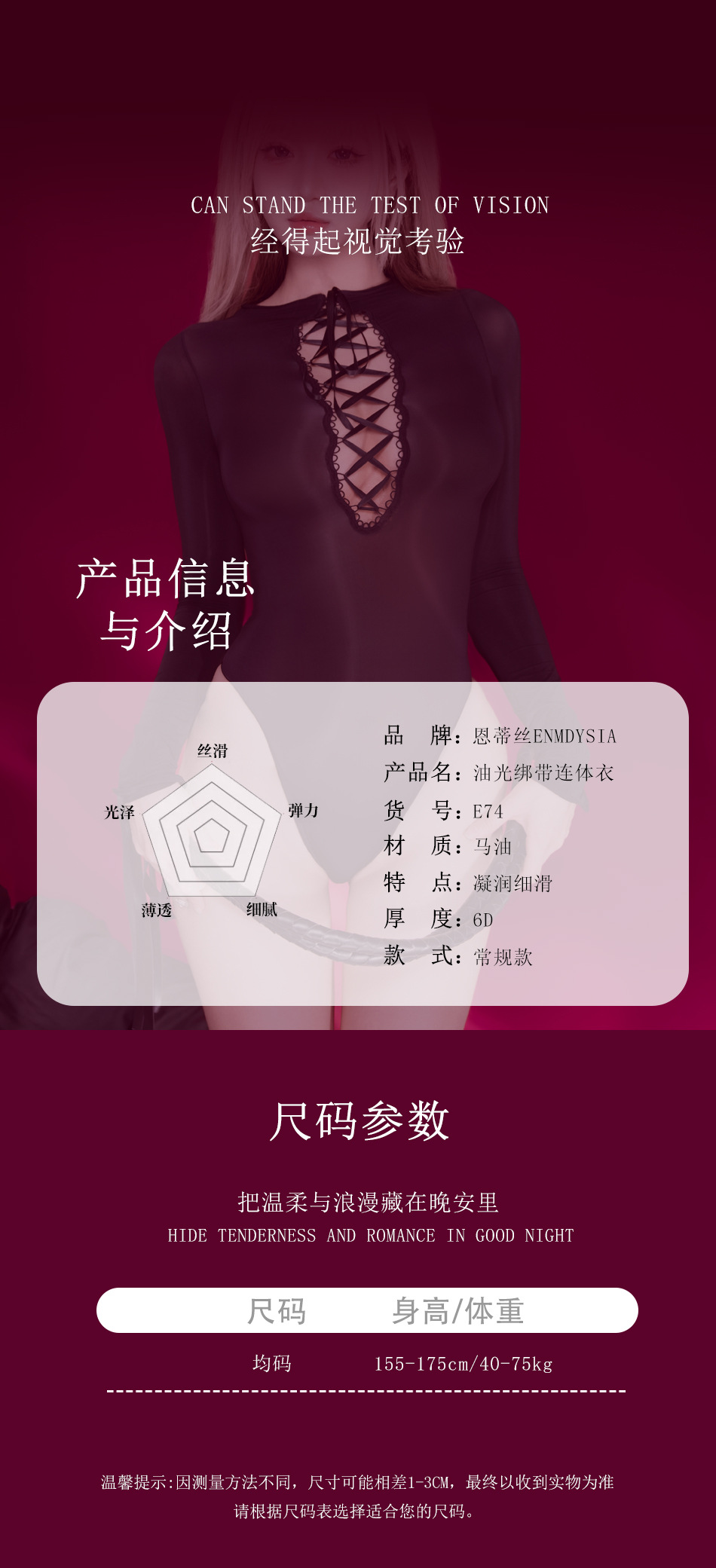恩蒂丝「囚爱」超薄油亮6D绑带性感丝滑缕空长袖连体衣