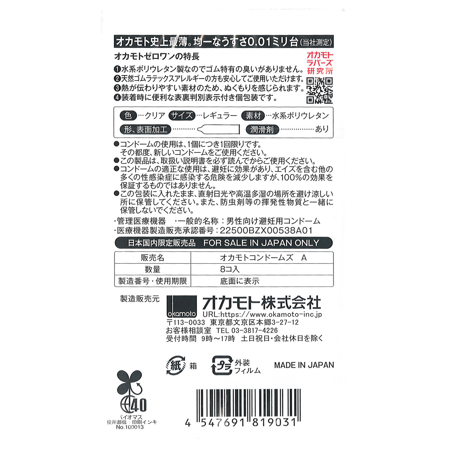 日本冈本 OKAMOTO 0.01 超薄安全套 - 8只装