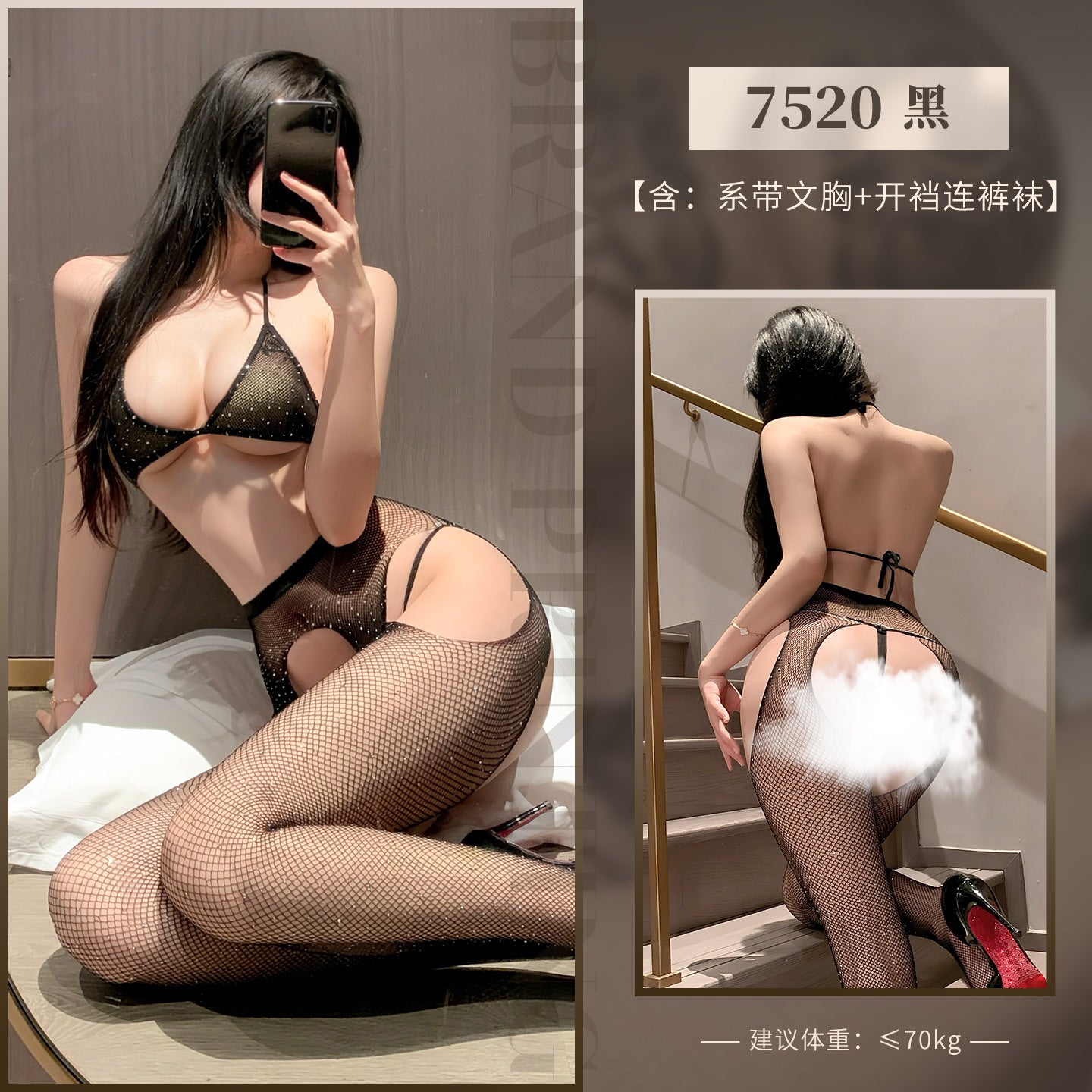 ◆暗夜星芒◆黑【系带文胸+开裆连裤袜】