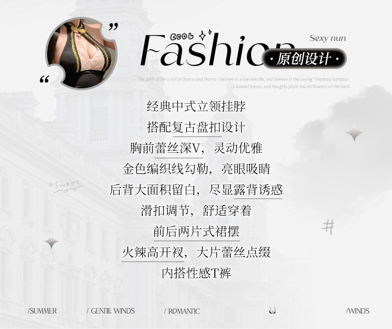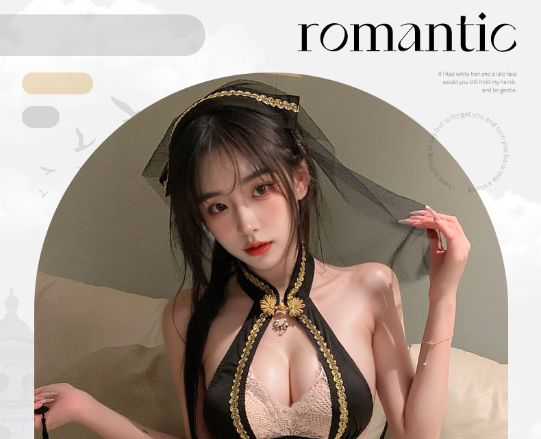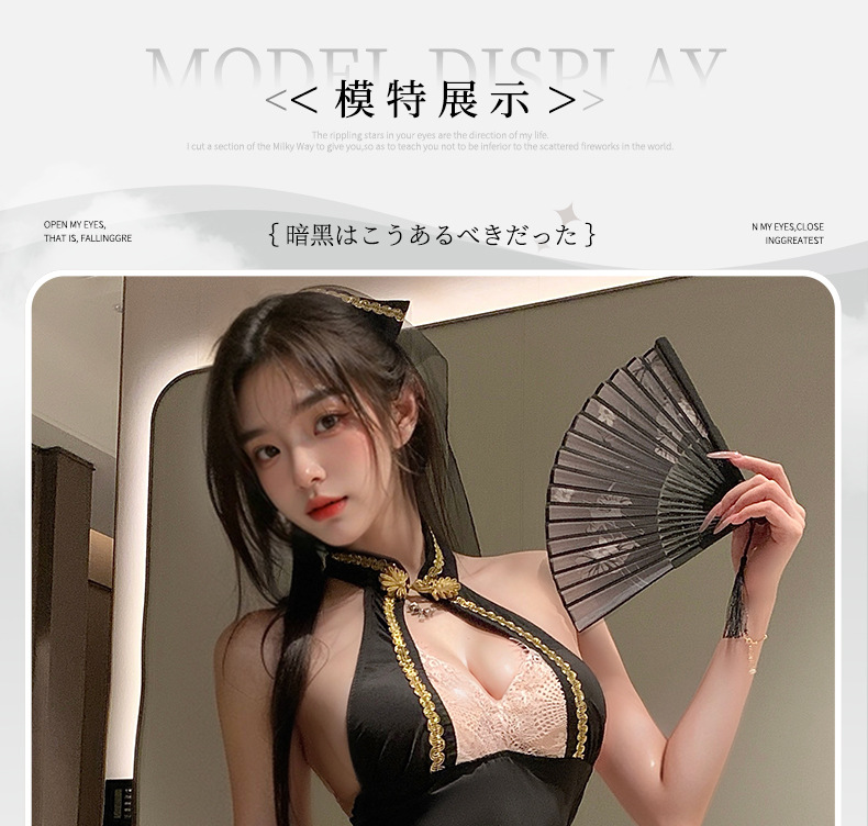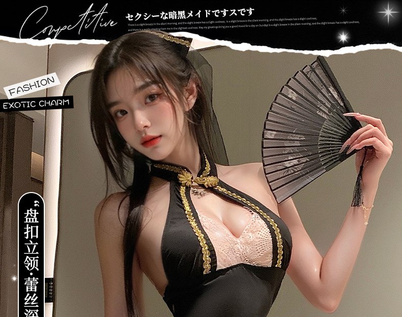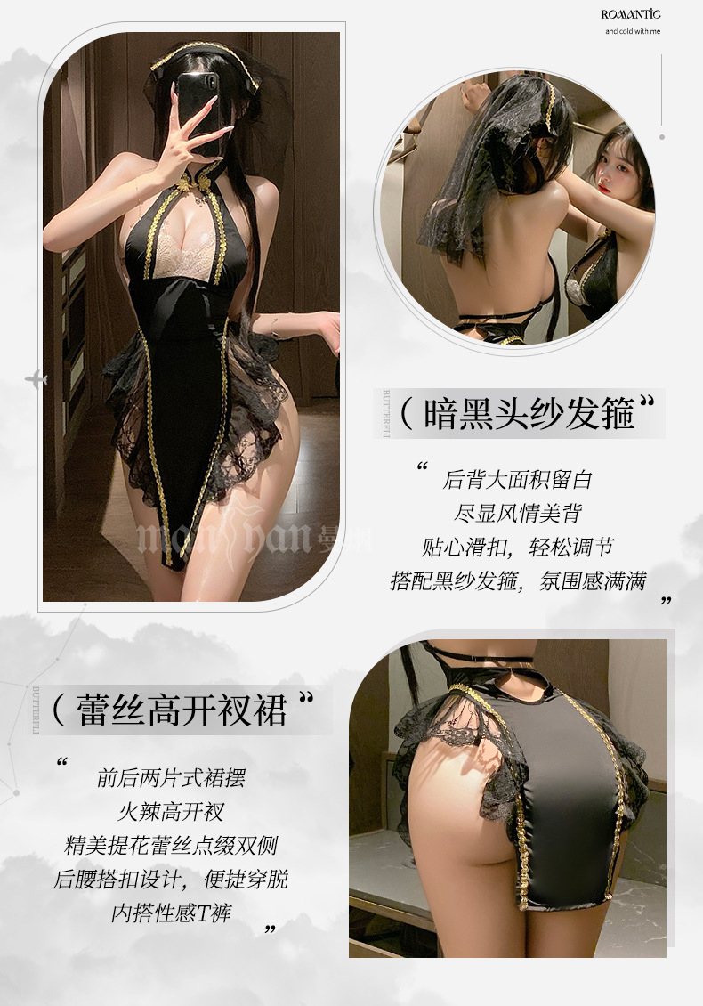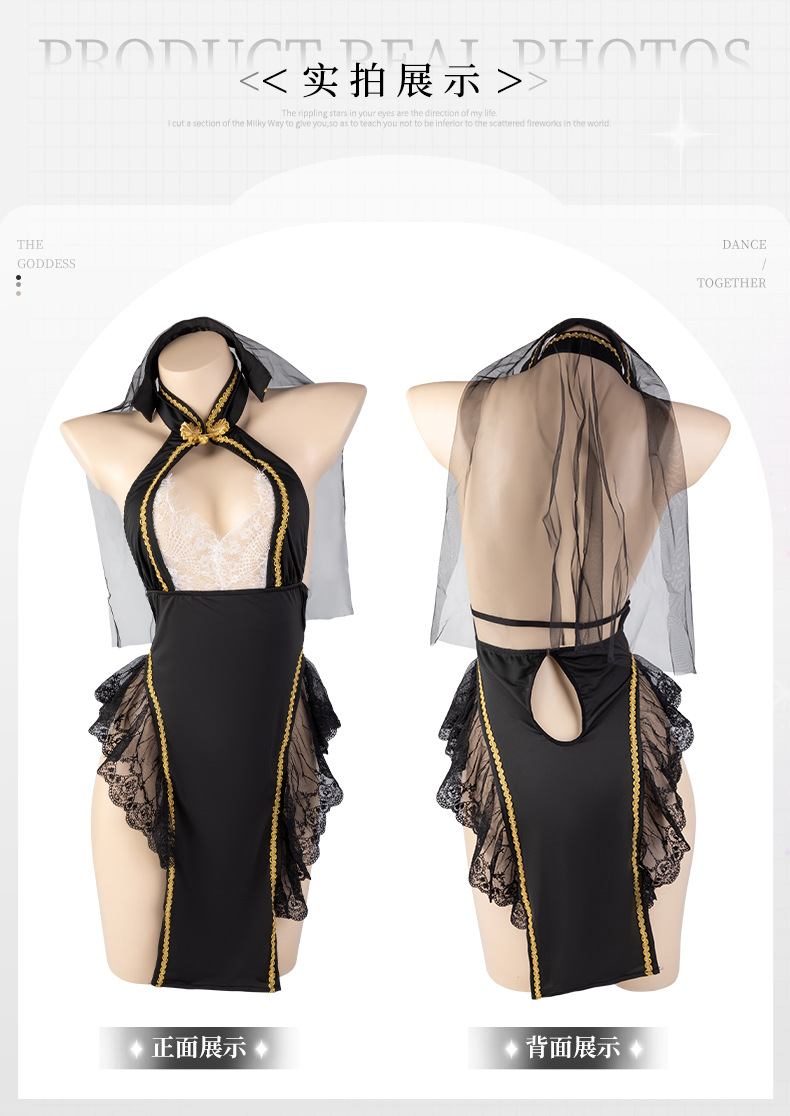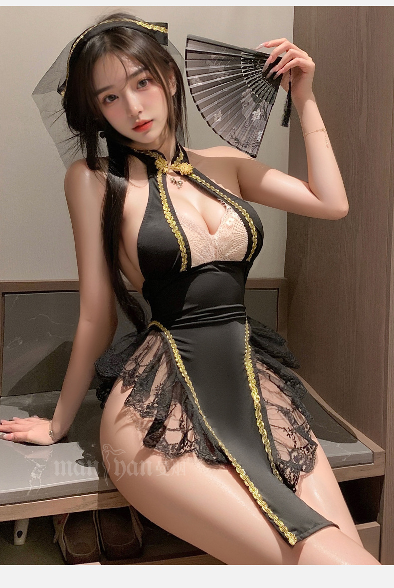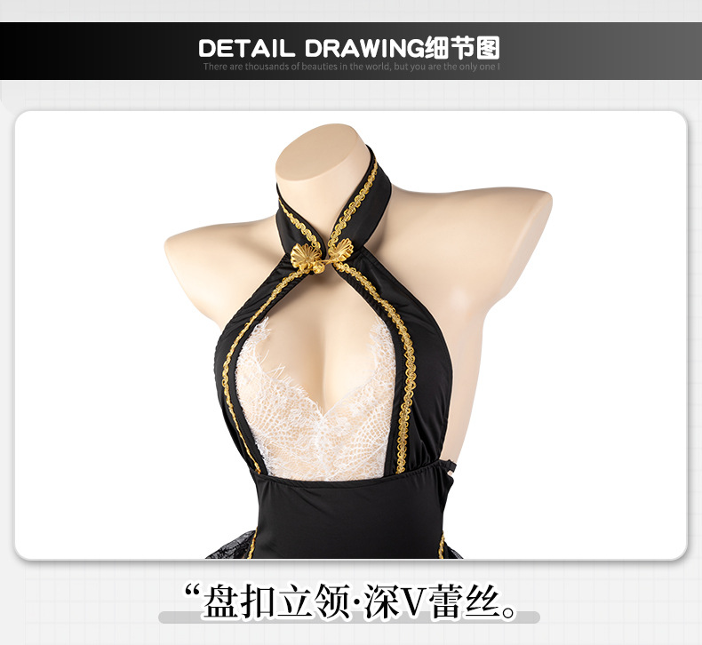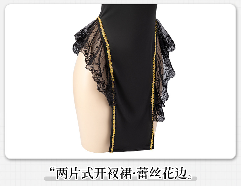 暗黑倩影 两片式盘扣立领蕾丝火辣高开衩旗袍制服