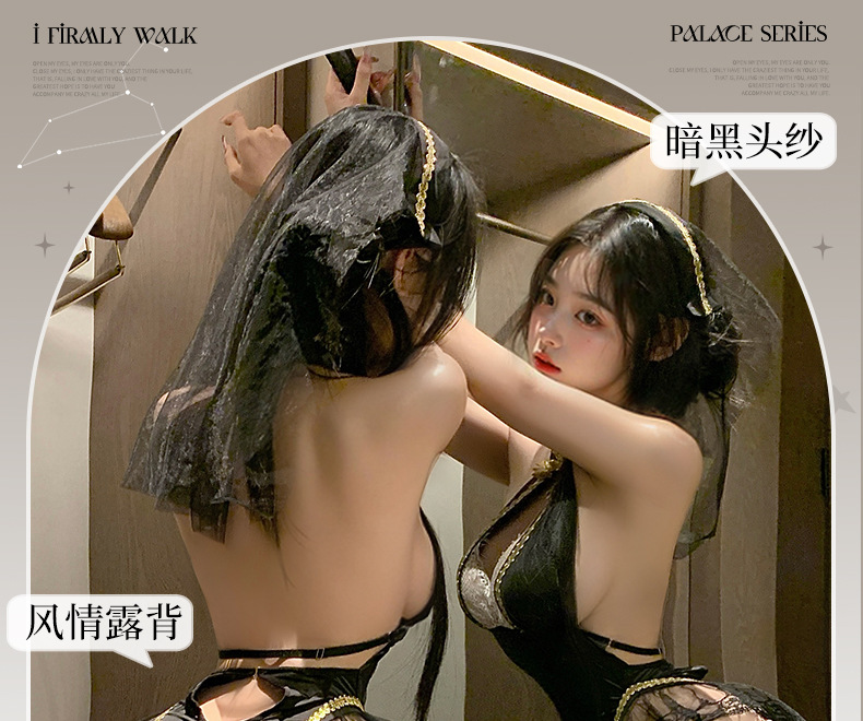暗黑倩影 黑色【发箍头纱+挂脖裙+T裤】