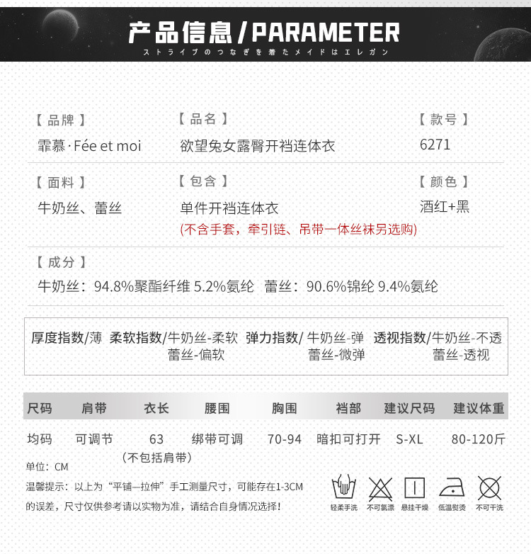 ◆欲望兔女◆酒红+黑【单件开裆连体衣】+黑吊带一体丝袜+项圈牵引链