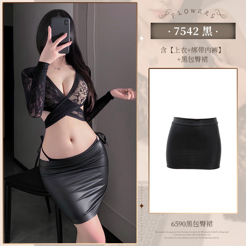 欲网勾心 黑【上衣+绑带内裤】+黑包臀裙