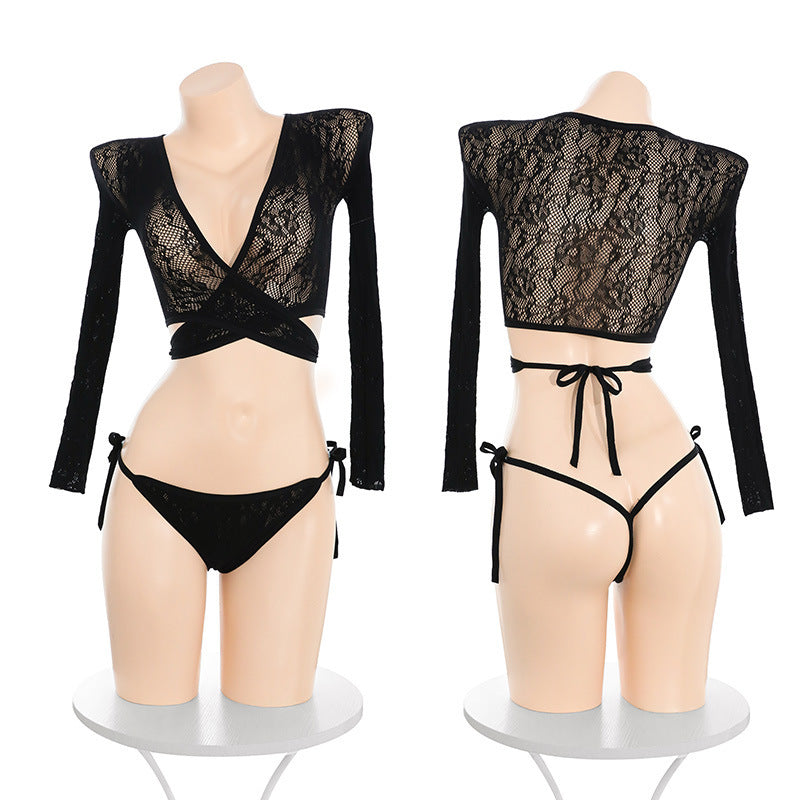 欲网勾心 魅惑绑带多穿法分体式连身网衣套装