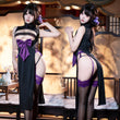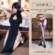 • 沦恋红尘 黑+紫【旗袍+T裤+可拆卸蝴蝶结】+紫黑吊带袜