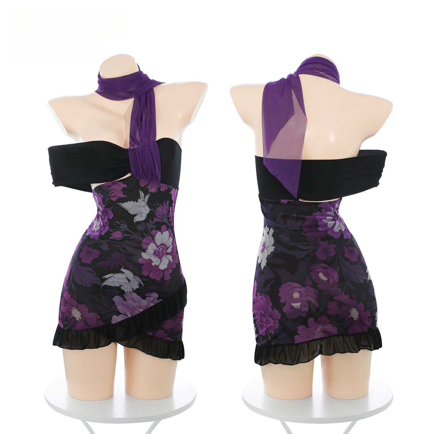 热浪繁花 撩欲连衣裙露胸一字肩睡裙
