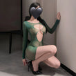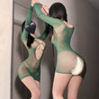 理性撕扯 知性修身镂空透视包臀连身网衣