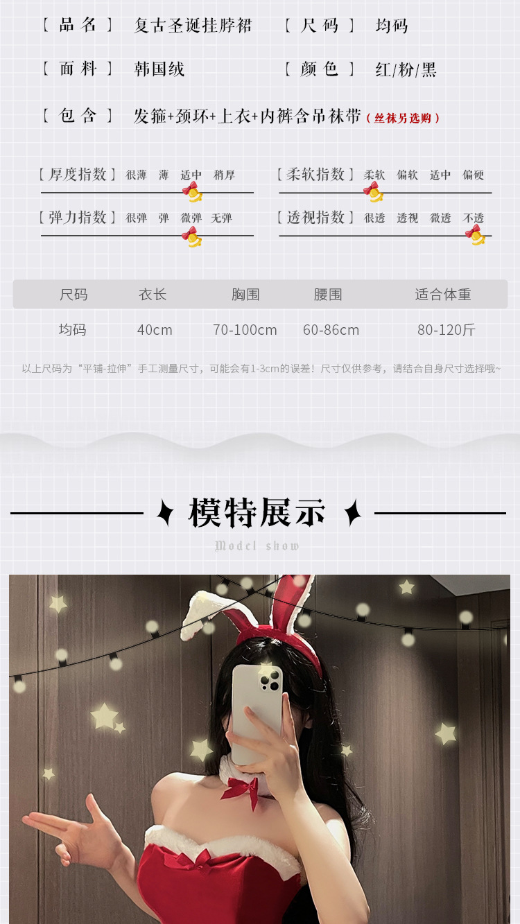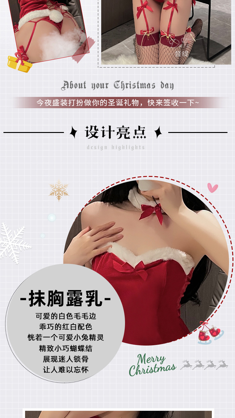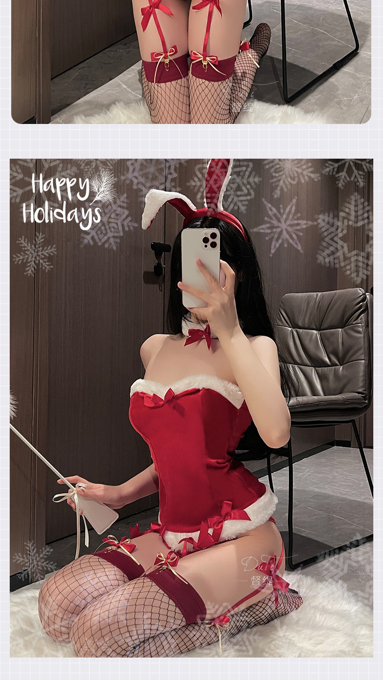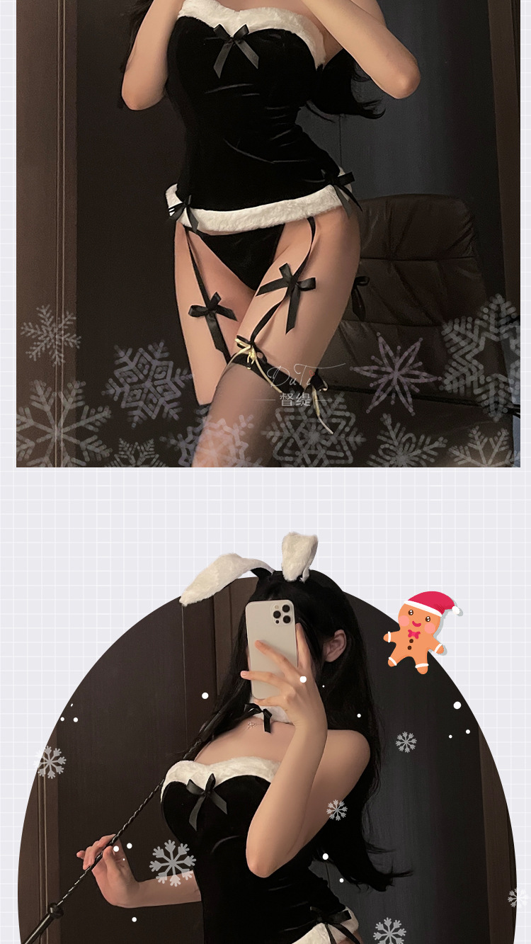 甜宠奶兔 丝绒抹胸绑带诱惑蝴蝶结吊袜兔女郎制服套装