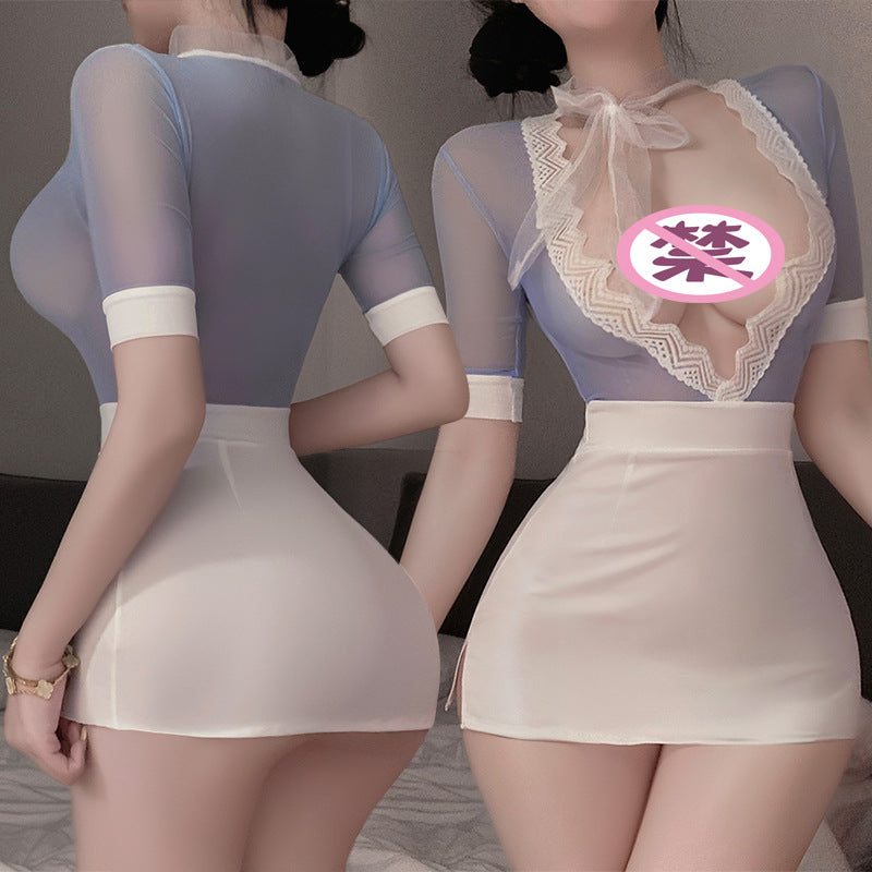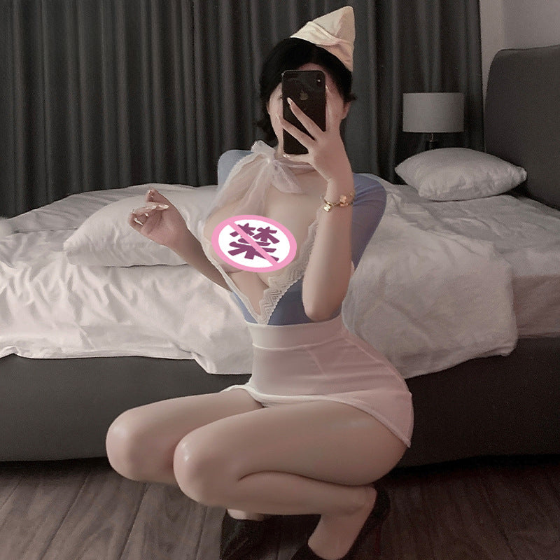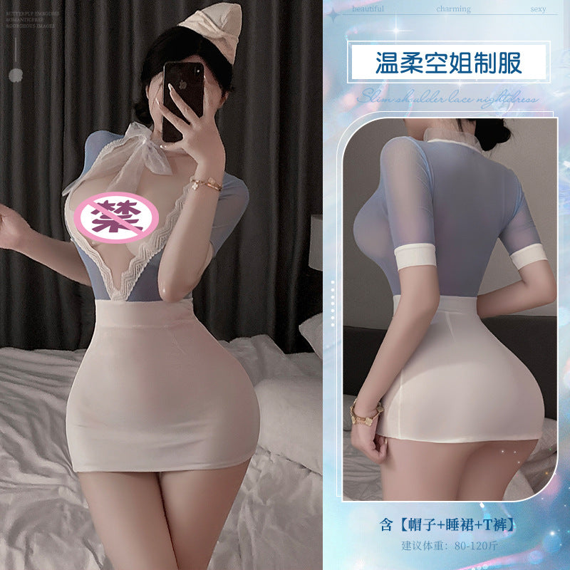 甜蜜航空 深V火辣透视包臀睡裙空姐少妇COS制服