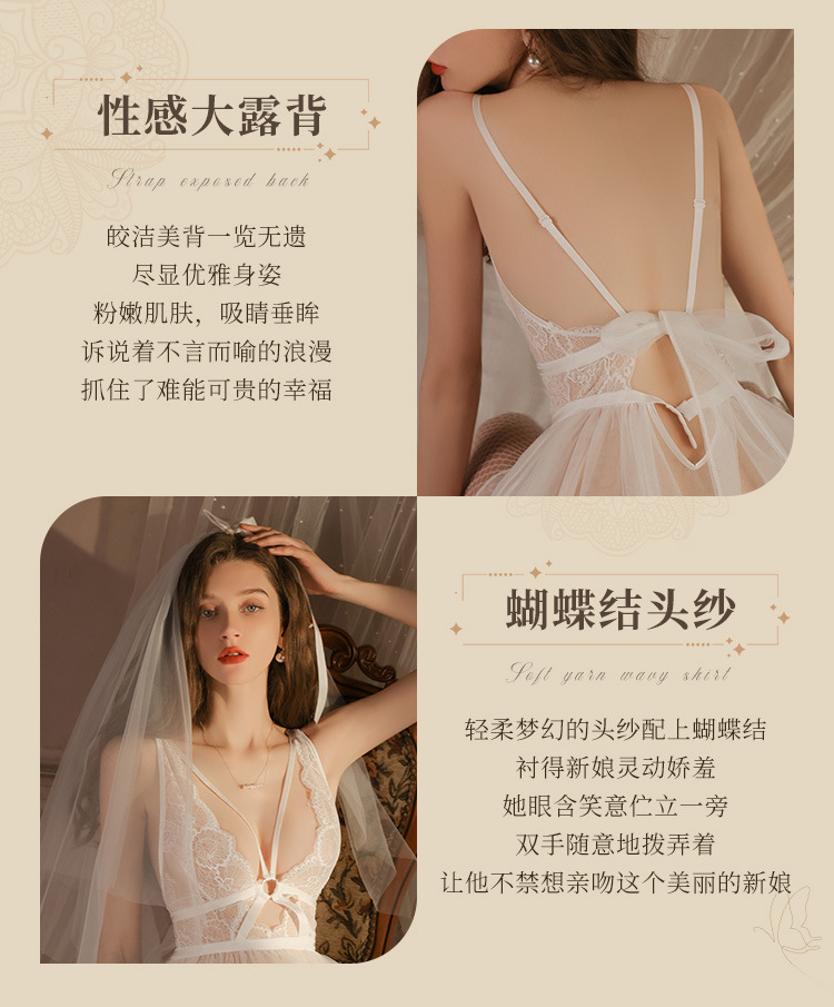 ◆唯美新娘◆白【头纱+连衣裙+T裤】+白长筒网袜