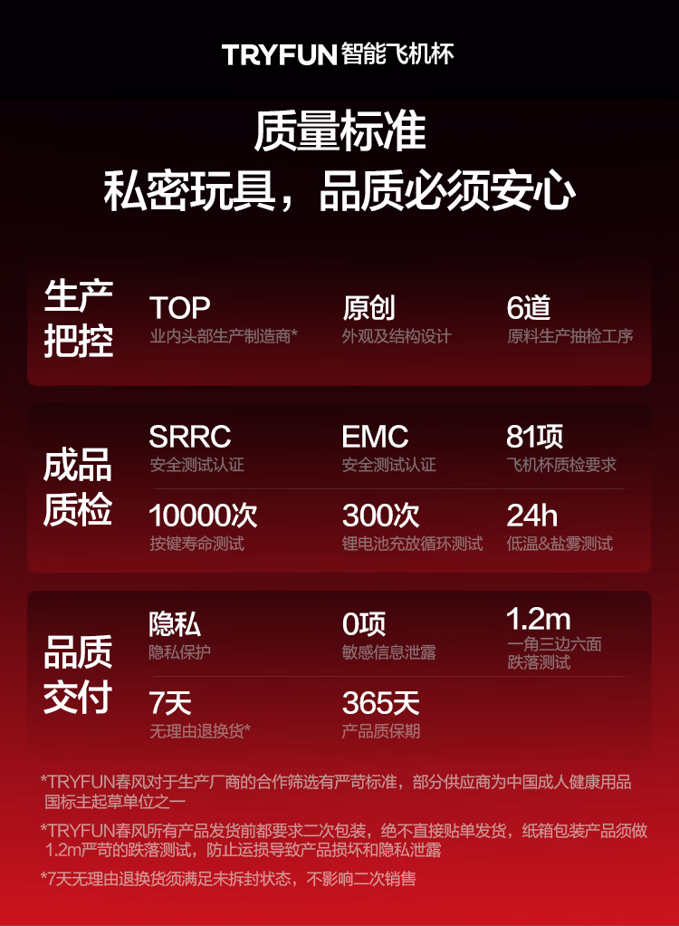 本网站所销售的产品均属于消耗品及个人私密使用之物品。为了保护您和其它消费者的利益,除产品明显缺陷以外,我们将无法退换购买的玩具和产品。在购买前请仔细阅读有关文字介绍,如有疑问,请及时和我们联系,我们将热情为您服务。如果您在商品使用中对商品质量或者商品使用方式有任何疑问,请直接联系我们的客服人员寻求解答。