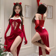 美神降临 圣诞欲兔丝绒露胸长裙套装