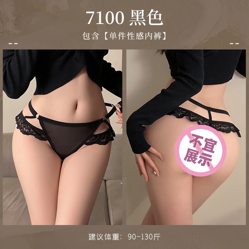 臀臀诱惑 纯欲风性感镂空三角裤透纱蕾丝花边内裤