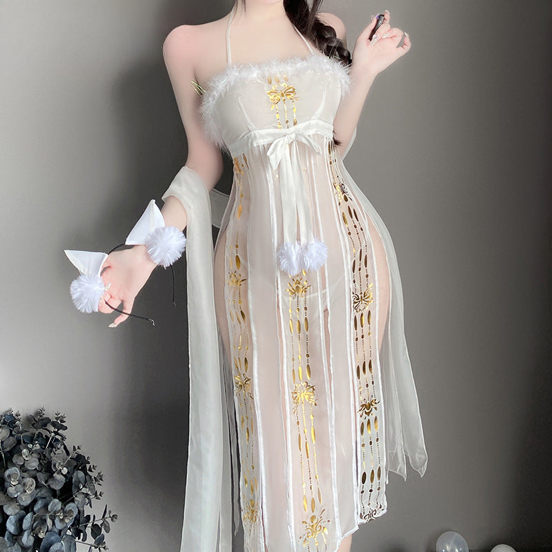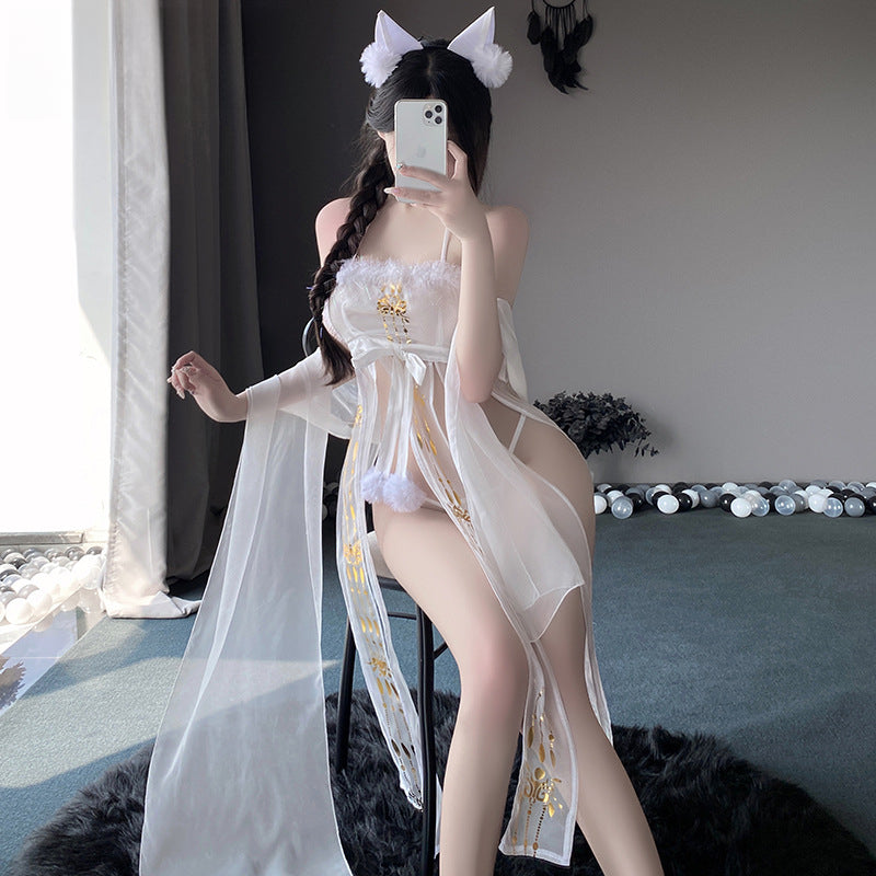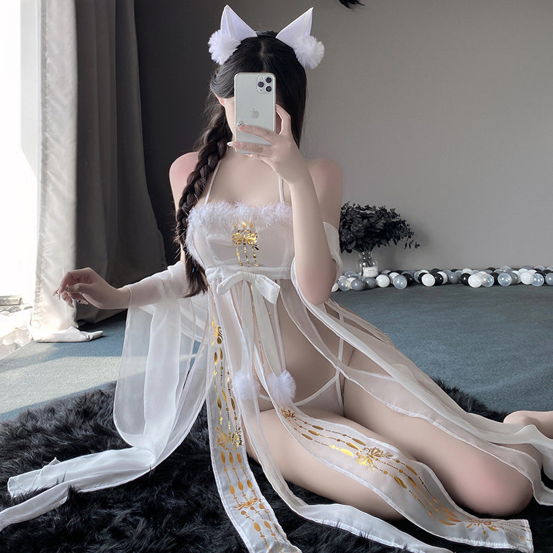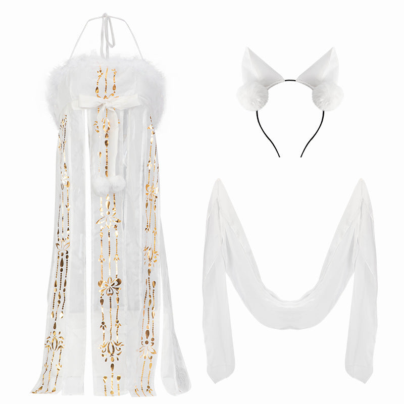颜色: 白色,包含发箍+纱裙+披帛+T裤