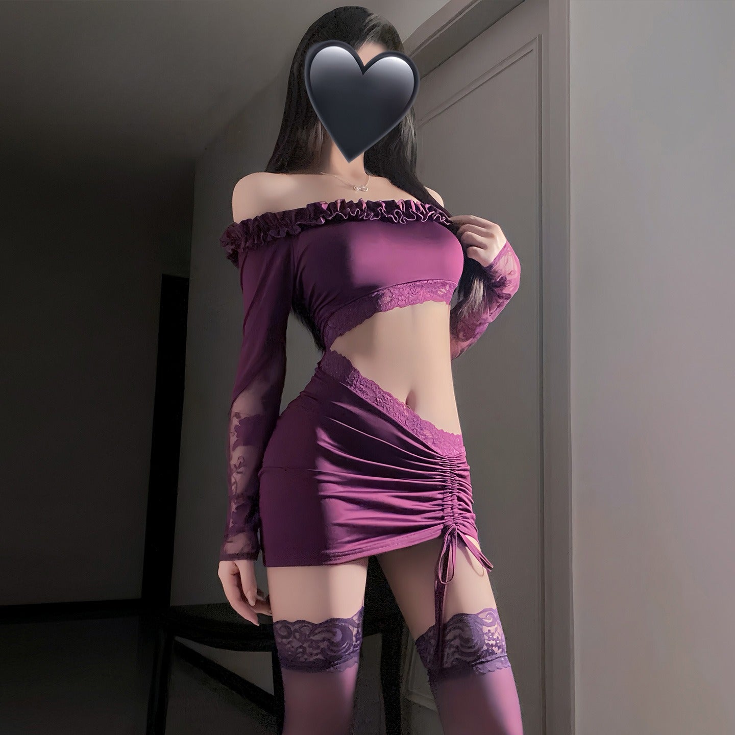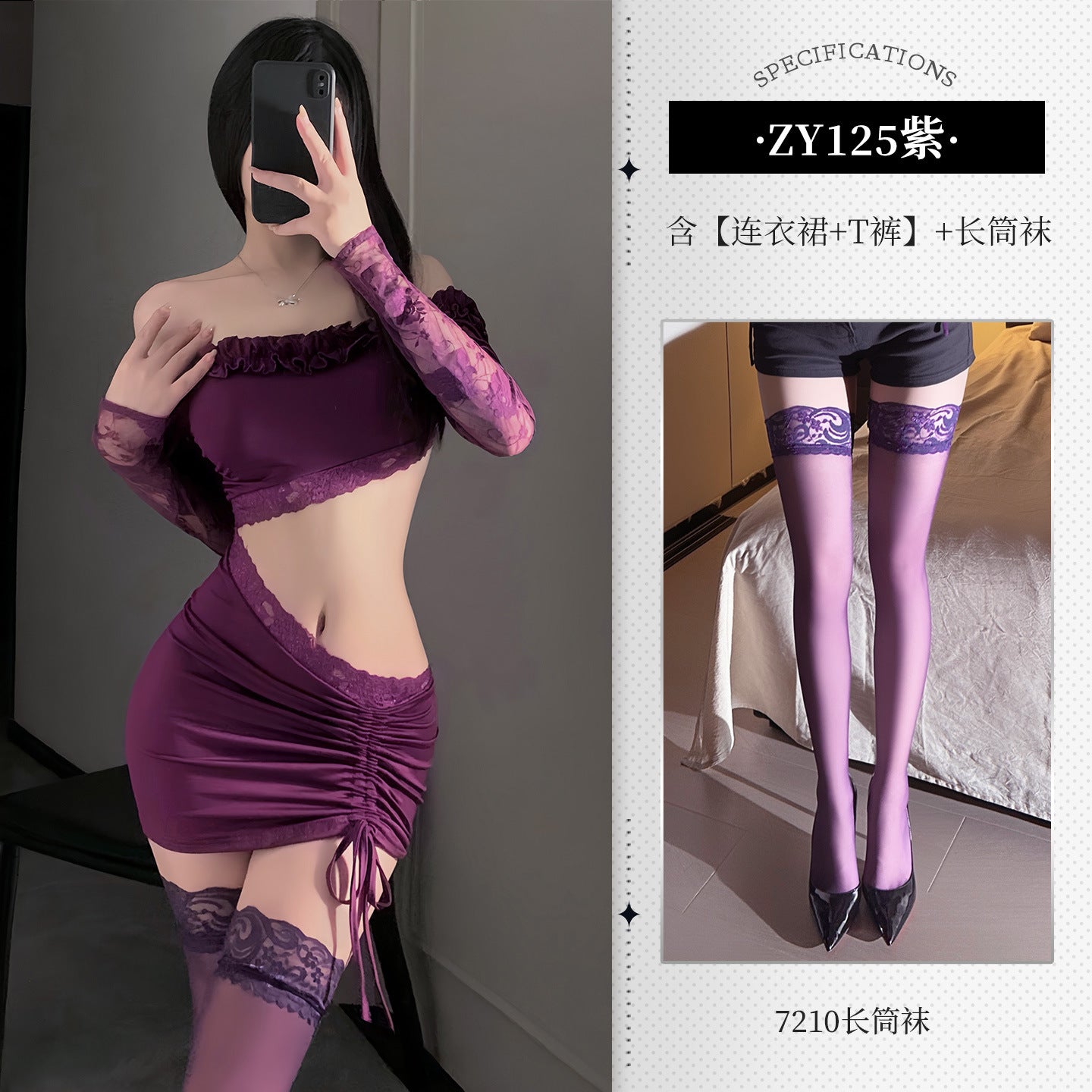 ◆葡萄甜酒◆紫【连衣裙+T裤】+紫长筒丝袜