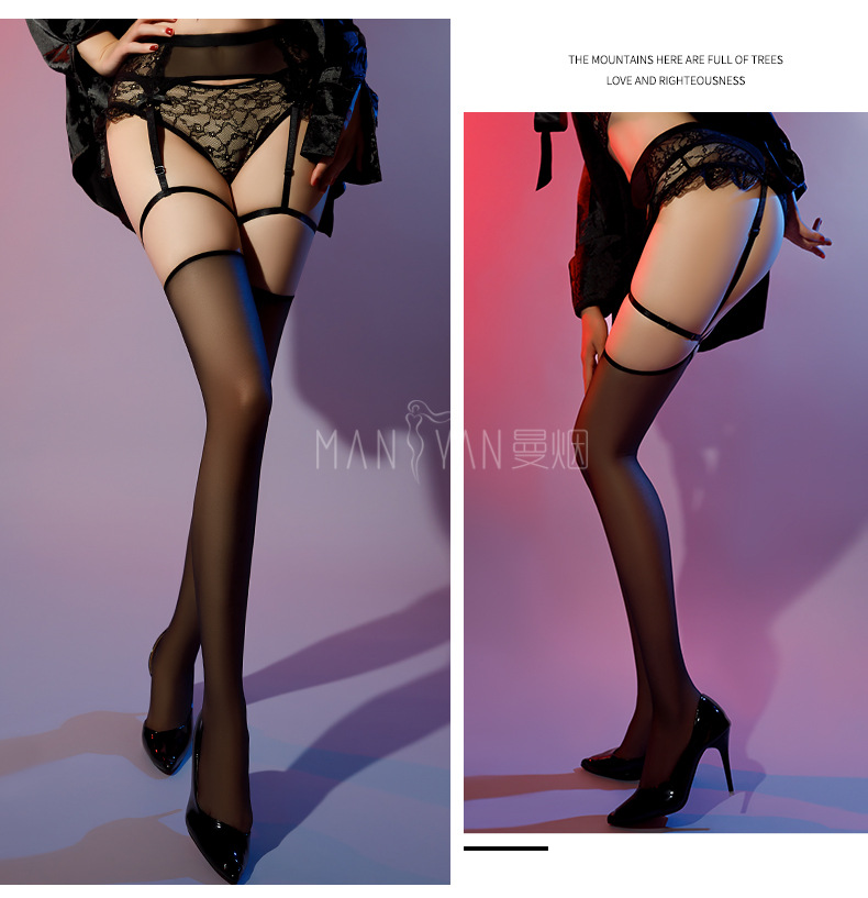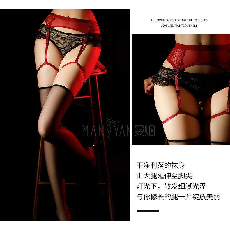 蕾丝透视拼接腰封一体式吊带袜