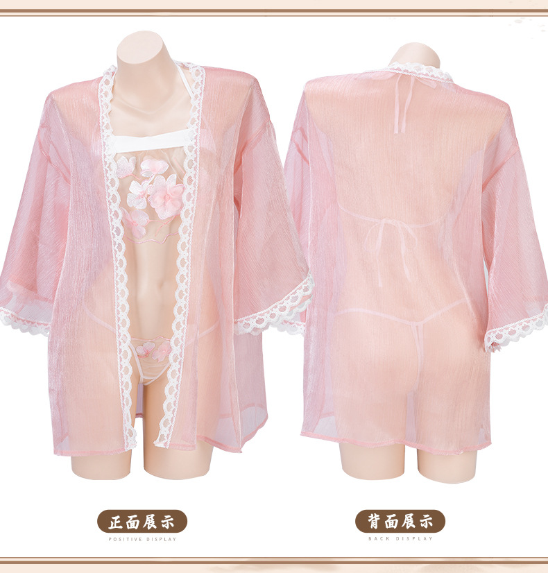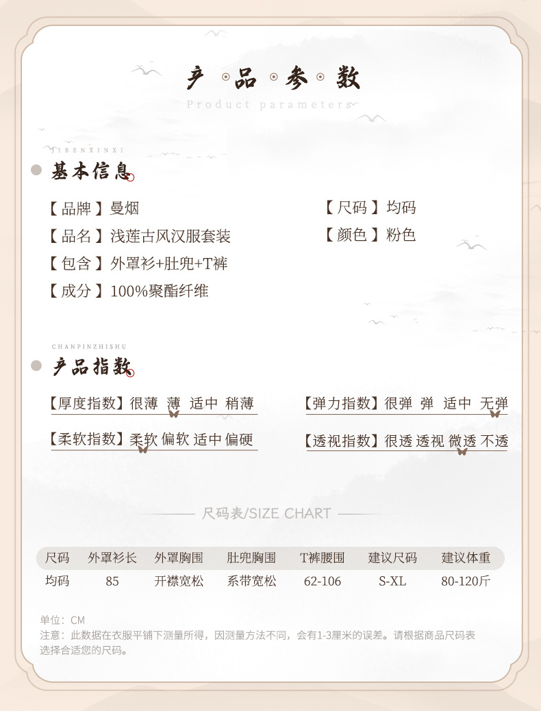 颜色:粉色,包含外罩衫+肚兜+T裤,本套装不包含模特配扇