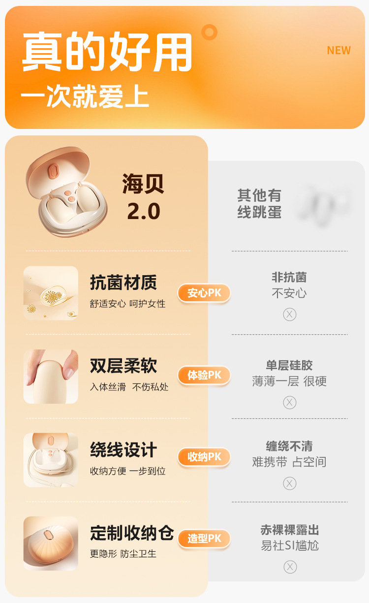 谜姬海贝跳蛋2.0抗菌吮吸震动跳蛋