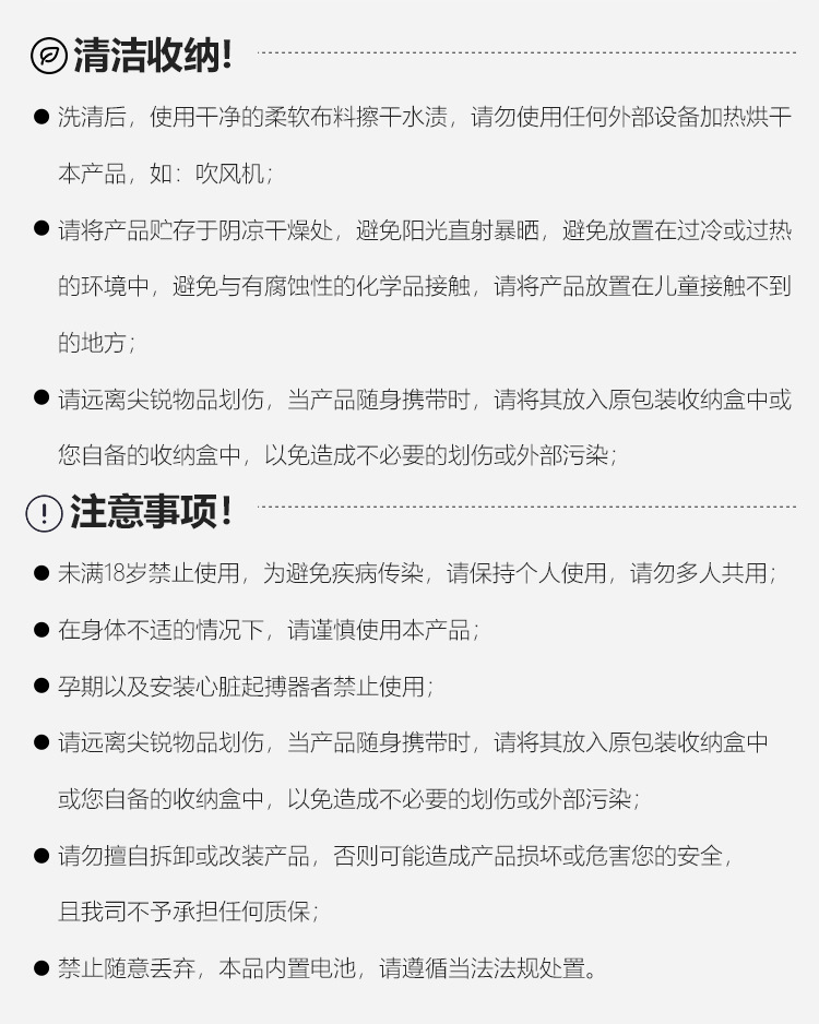 本网站所销售的产品均属于消耗品及个人私密使用之物品。为了保护您和其它消费者的利益,除产品明显缺陷以外,我们将无法退换购买的玩具和产品。在购买前请仔细阅读有关文字介绍,如有疑问,请及时和我们联系,我们将热情为您服务。如果您在商品使用中对商品质量或者商品使用方式有任何疑问,请直接联系我们的客服人员寻求解答。