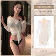◆辣妹邀约◆玫红+黑【文胸+内裤】+白外罩衫