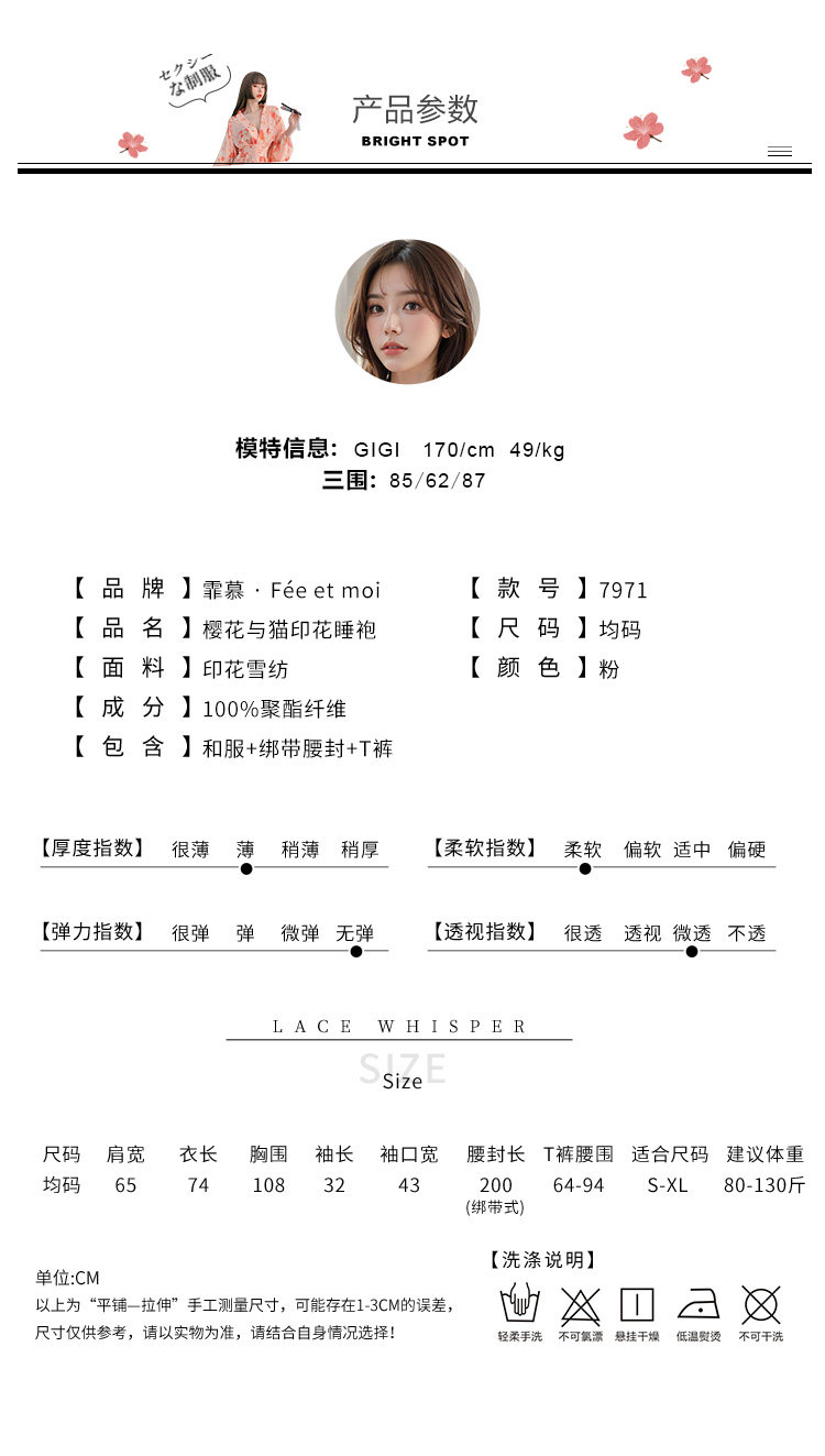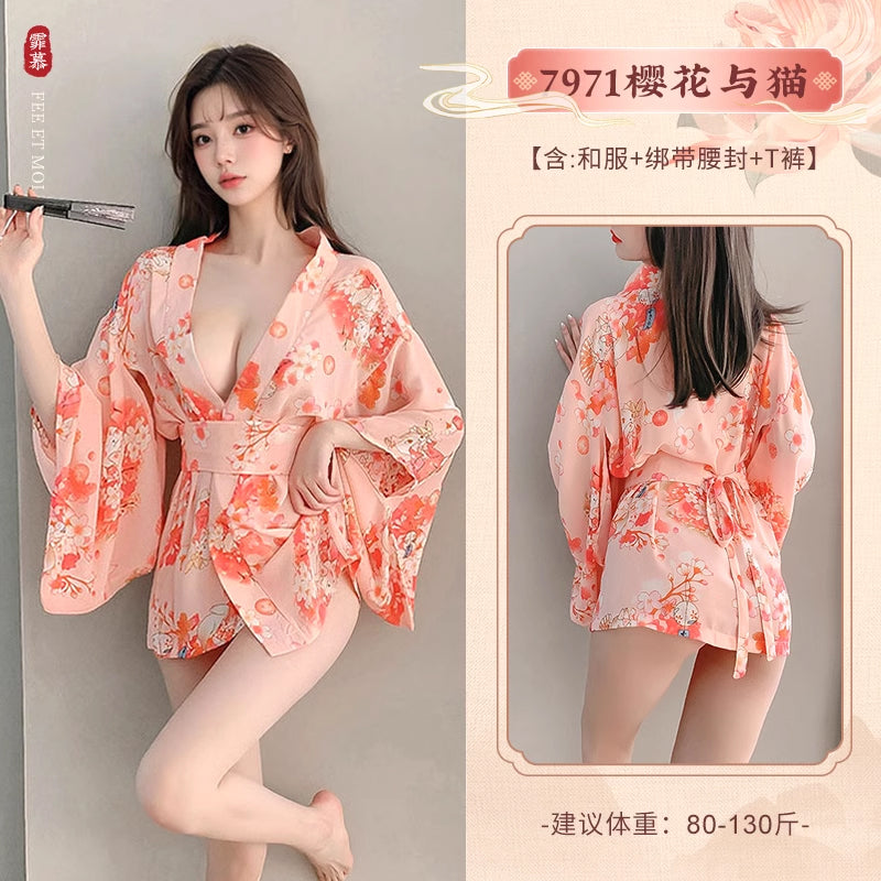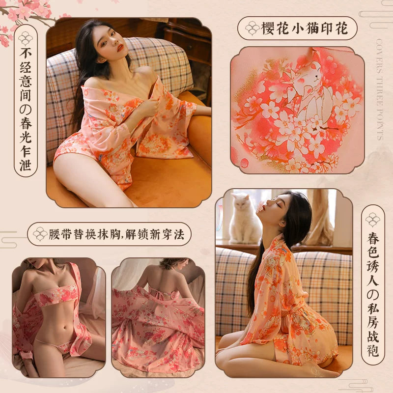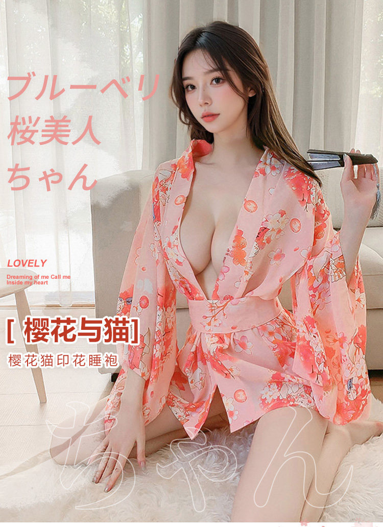 雪纺日系樱花和服套装角色扮演浴袍制服套装
