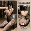 魅惑女神 性感镂空露背连身袜挂脖绣花开裆网衣