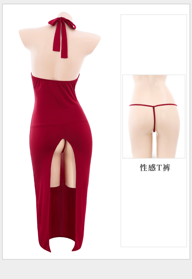 酒红【连衣裙+T裤】+酒红玫瑰花颈环