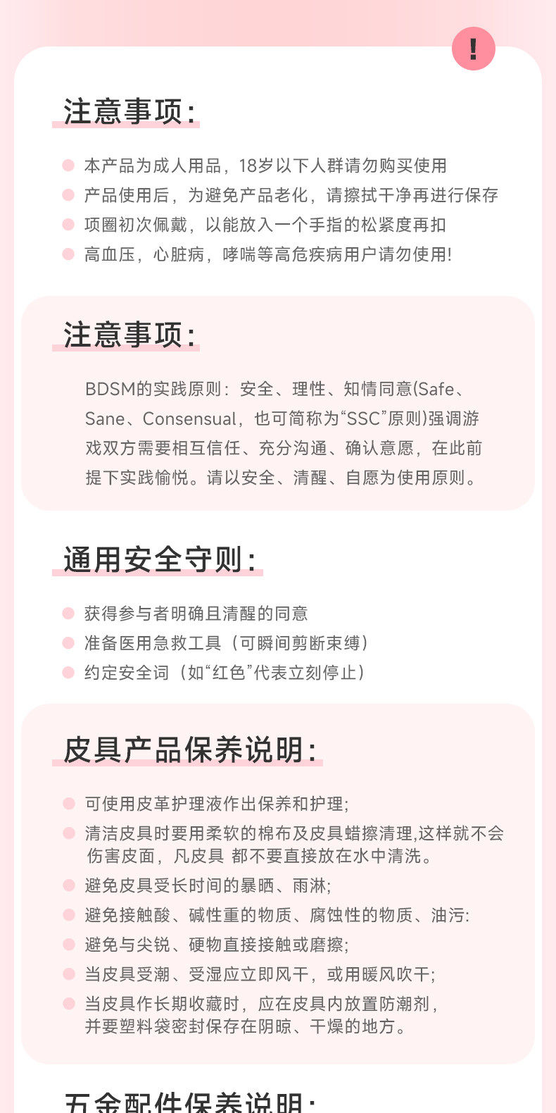 本网站所销售的产品均属于消耗品及个人私密使用之物品。为了保护您和其它消费者的利益,除产品明显缺陷以外,我们将无法退换购买的玩具和产品。在购买前请仔细阅读有关文字介绍,如有疑问,请及时和我们联系,我们将热情为您服务。如果您在商品使用中对商品质量或者商品使用方式有任何疑问,请直接联系我们的客服人员寻求解答。