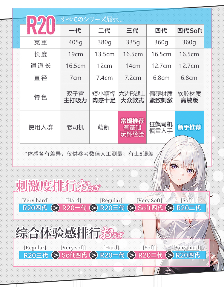 日本对子哈特R20 的第一代,第二代,第三代和第四代飞机杯,名器中的名器,业界盛名的榨汁机,以专治老司机不服而闻名。